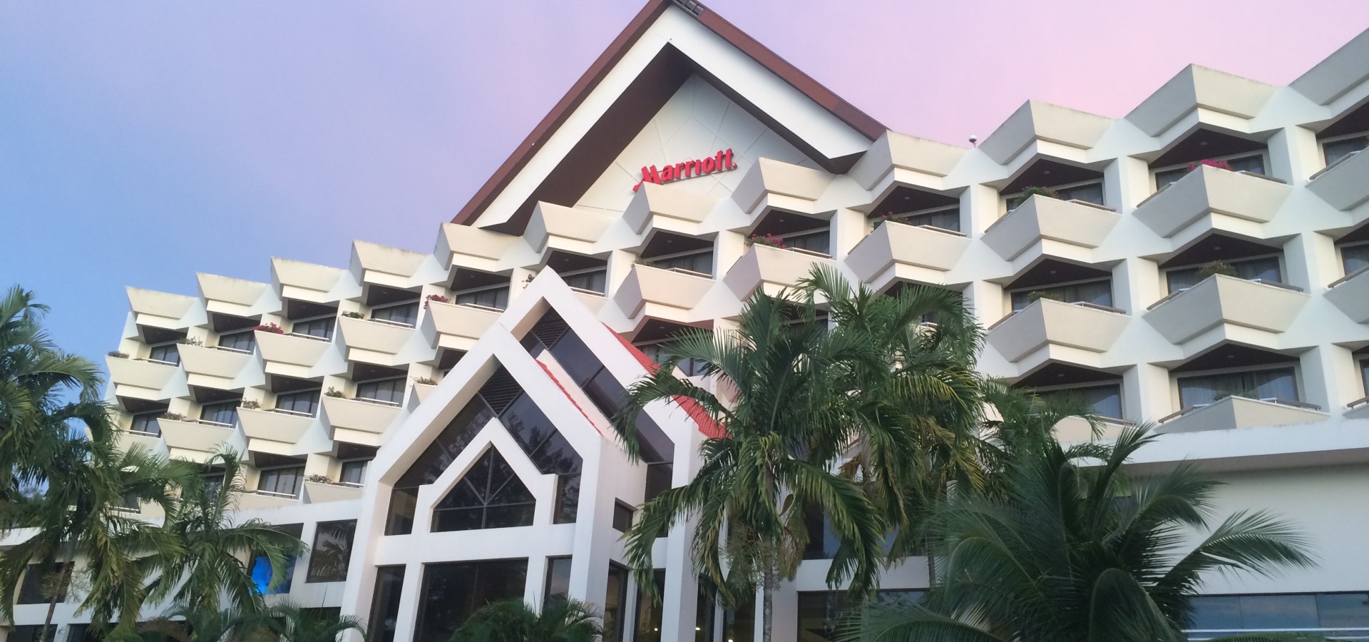 The entrance has an interesting open design where there are no front entrance doors, the breeze just sweeps through and is very cooling. The gardens house many species of native birds; my friend designed a booklet-map of the hotel exterior, with photos of the many birds you can see. The flowers, trees and plants are also numerous and there is a jogging trail for visitors if they love a bit of exercise. It runs round the outside edge of the Marriott grounds.